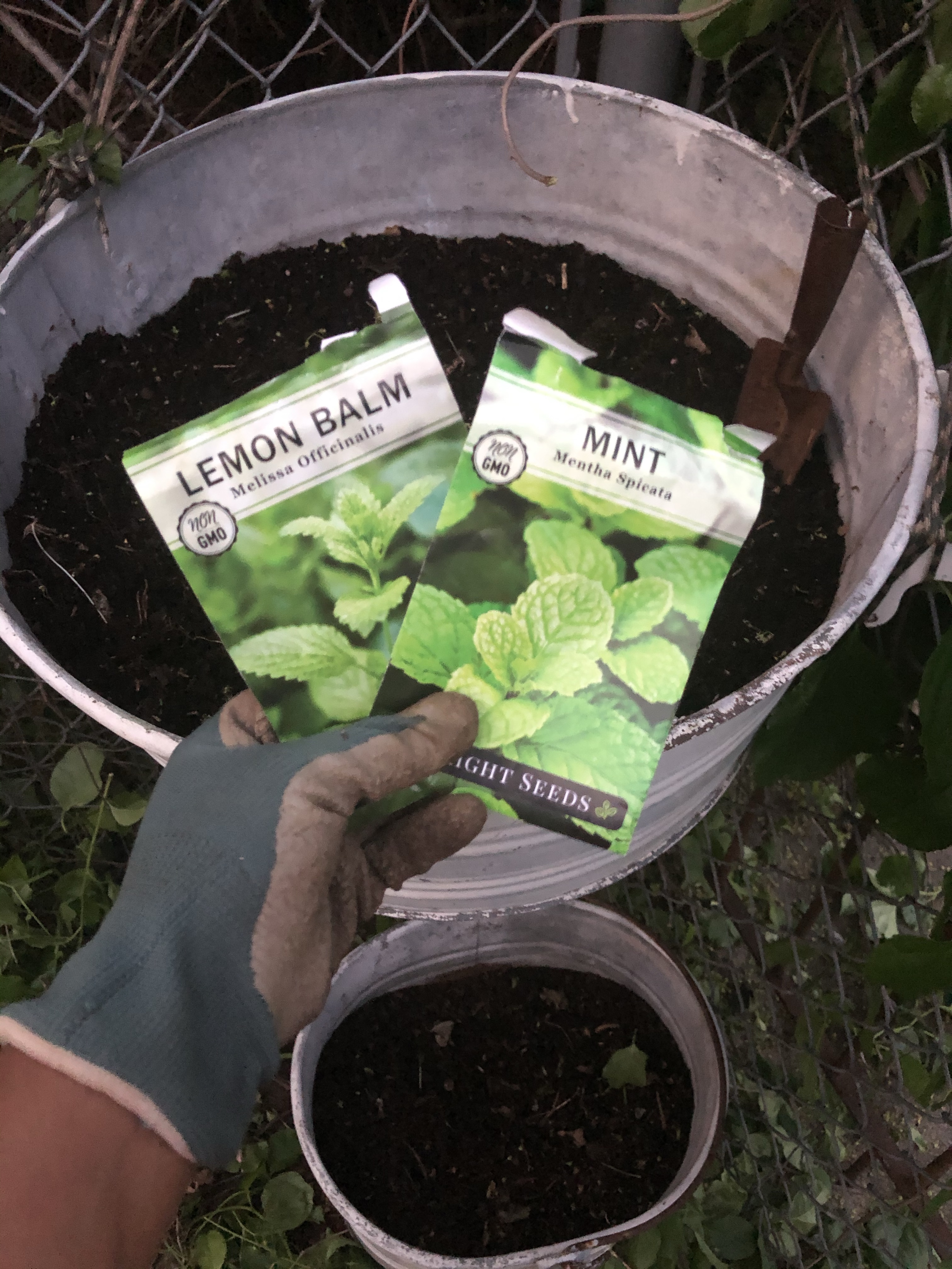 By planting the lemon balm and mint in the container pots we can control its growth – and avoid its invasive tendencies – while still being able to enjoy the plant. When I tell you that my arms were hurting after all of this work! WHEW!! Who needs arm day at the gym?