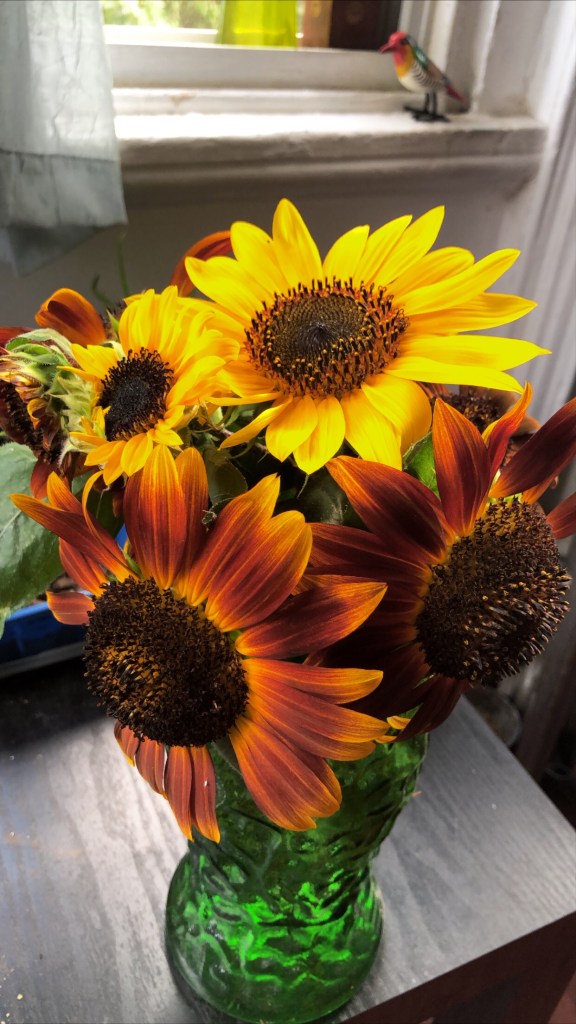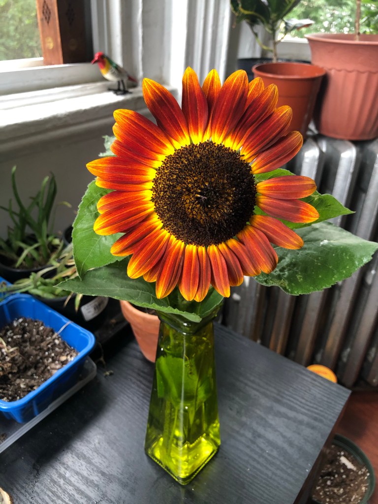 Nothing lasts forever. We have to enjoy the beautiful things in life while they exist – even if briefly. So although it does suck that my sunflowers have been ravaged like this – lol – I’ve accepted that it’s just going to happen (birds gotta eat too!). Now I’m enjoying the flowers as they grow and bloom. I’ve also been making the best out of the situation by harvesting and drying out their petals (since they’ve been falling out anyway) to be used for herbal purposes. And when possible, I’ve taken a few cuttings to place in vases around my apartment. Because fresh and natural flowers are always better than artificial ones. 🙂