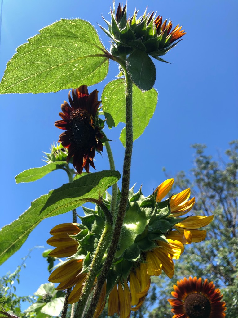 One plant, many flowers: It’s possible to have multiple sunflowers per plant! This was a very pleasant surprise for me. After a sunflower plant had produced an obvious flower head, I was shocked to find that more flower heads were growing along the stalk and beneath the initial flower head. I never knew that sunflowers could grow this way because I’ve only ever seen the plants to have one flower whenever I’ve seen them in pictures or in person. Am I the only one who didn’t know? Either way, it’s pretty dope.