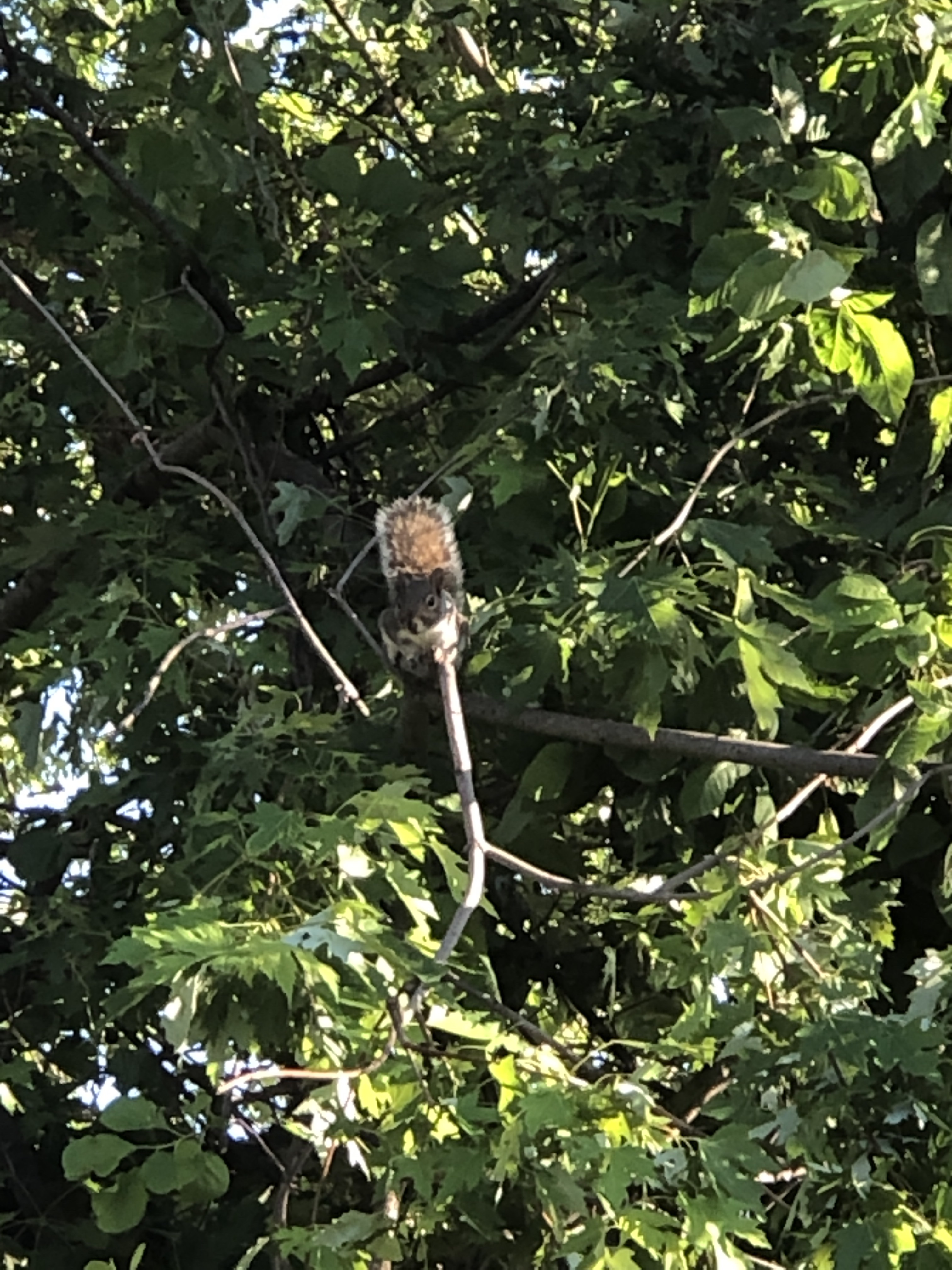 A squirrel in a tree squeaks and squalls as he tussles among the leaves of a branch, probably searching for a nut to add to his growing pile. Suddenly – swiftly – he is sitting. Perched. Silently staring. Observing what this human is doing in his domain. And the geese fly overhead, calling to one another to get their formation in order, struggling to do so, but almost sounding as if they are laughing about it.