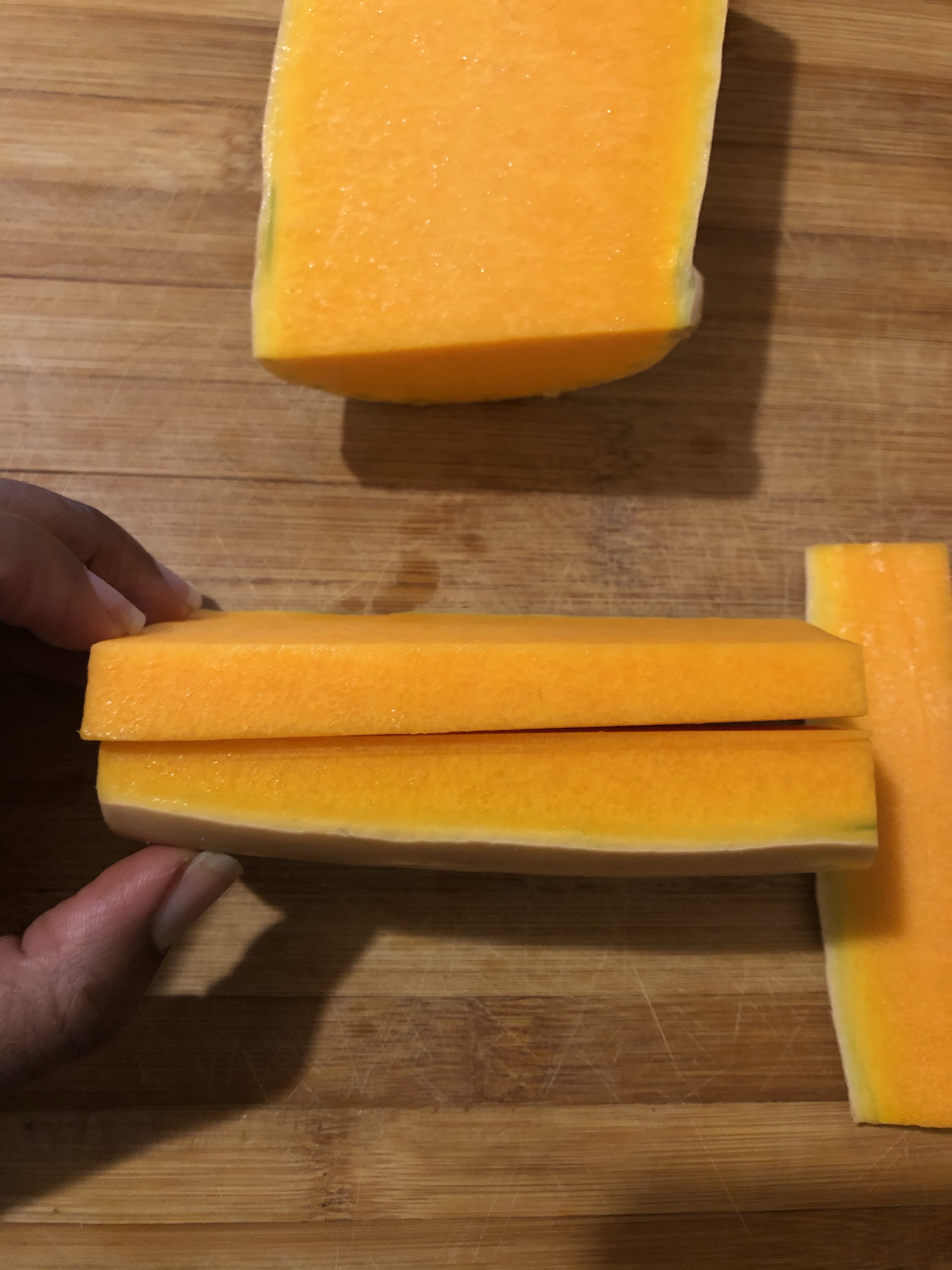 I love experimenting with different vegetables to make fries because they are so simple and easy and a simple way to diversify your veggie intake. Most people know about the yumminess that are sweet potato fries but butternut squash fries can be just as good! My sister recommended I try making them and I was pleasantly surprised. Now I will say that because squash can get tender quickly, these fries may be a little more softer than other kinds of fries (I think it’s because they are less starchy?) but they’re still worthwhile to try in my opinion!